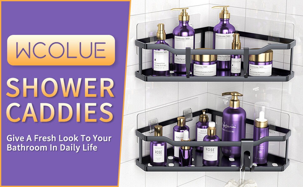 2PCS Shower Shelf Caddy Triangular Bathroom Organizer Storage Holder Corner Rack