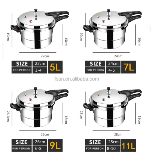 Aluminum Gas Pressure cooker Infuction Cooker Capacity Polished size options