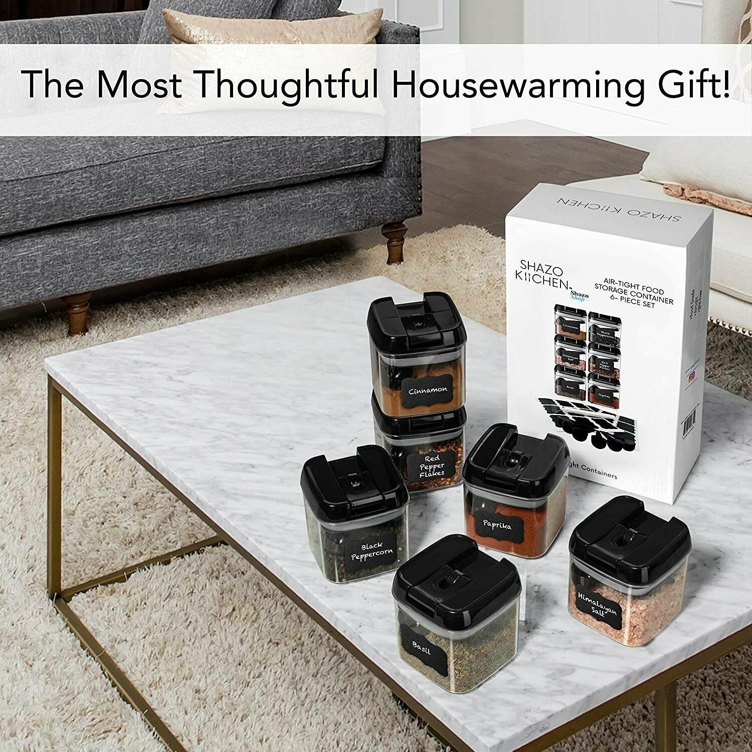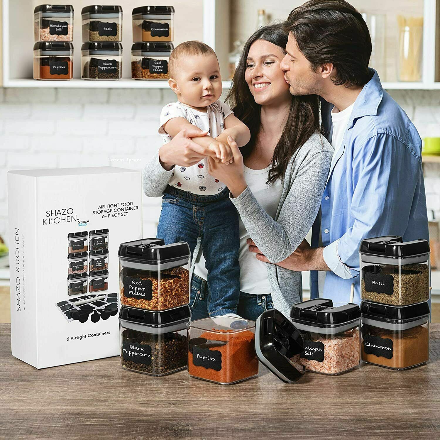 Set of 6 | Airtight Plastic Food Storage Containers | with Spoons and Labels